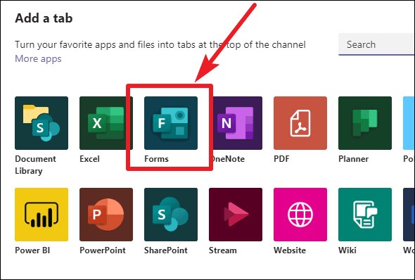 Step 2: Select Forms from the list. If it's not visible, search for it.
