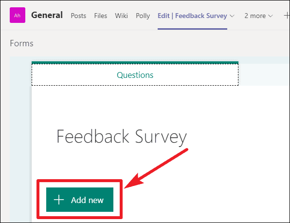 Step 4: Once the form is added as a tab, team members can add questions by clicking Add New under the Questions section. Changes are saved automatically.