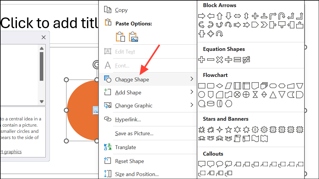 Step 6: If you want to further edit individual shapes, right-click the SmartArt and choose Change Shape. This allows you to manipulate each piece as a standard PowerPoint shape, giving you more flexibility for advanced customizations.