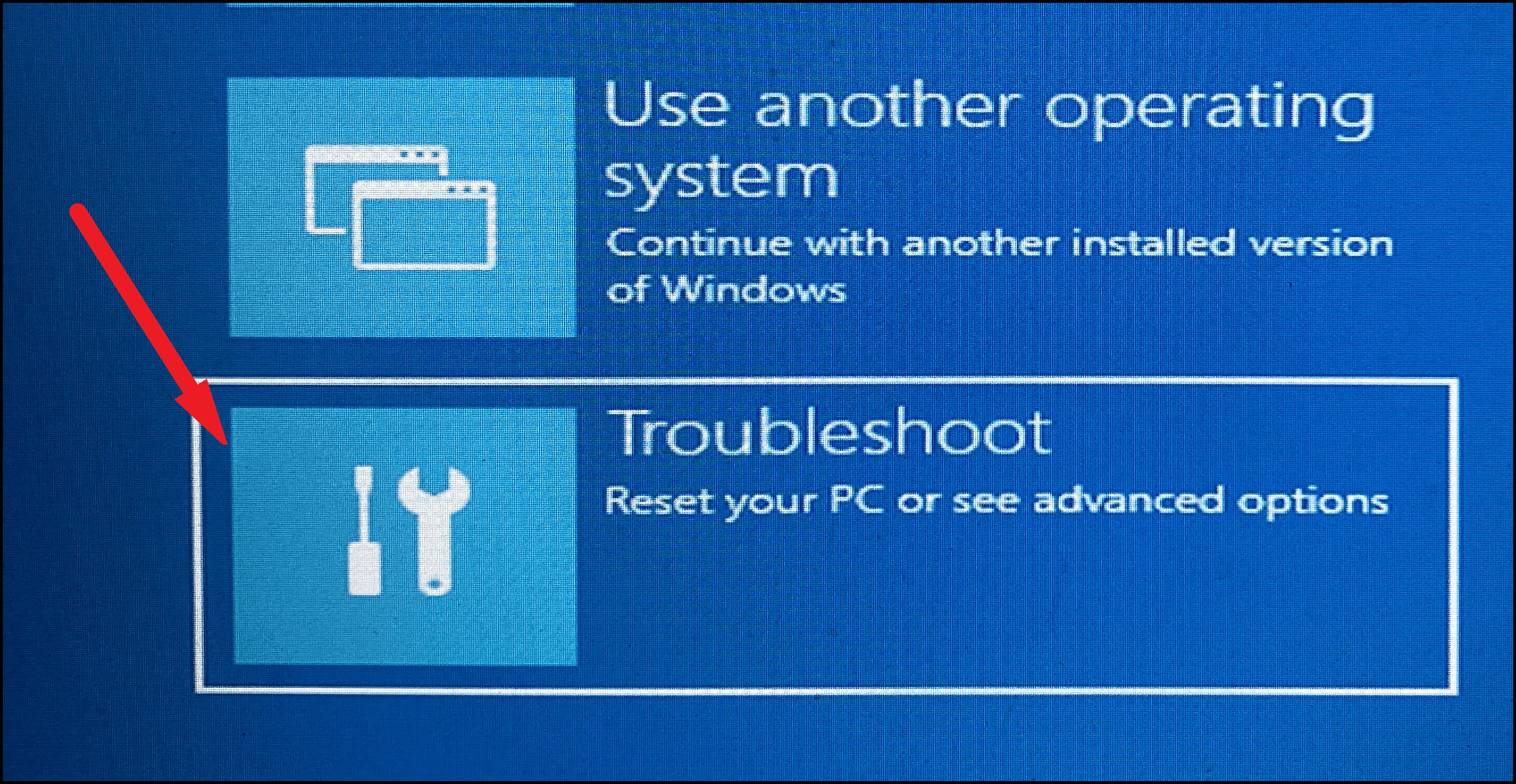 - Once in the Windows Recovery Environment, select Troubleshoot.