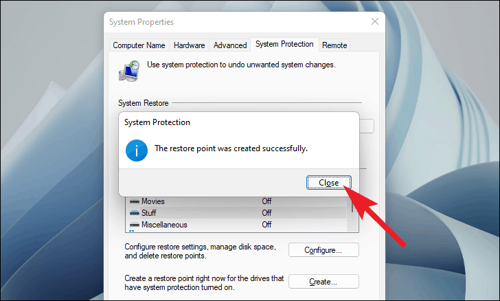 Your Restore Point has been created successfully. You can now revert to this point if needed.