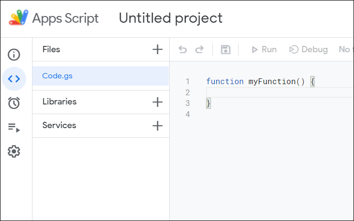 Step 2: In the Code.gs file, replace any existing code with the following script: