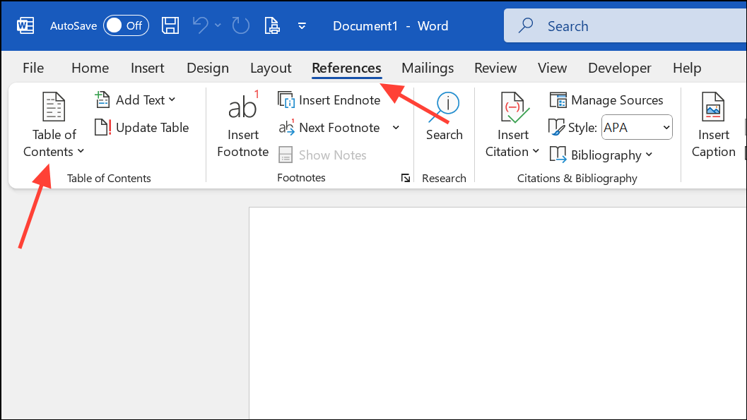 Step 2: Go to the References tab, then select Table of Contents. Choose one of the automatic styles from the dropdown menu. Word will generate the TOC based on the heading styles (Heading 1, Heading 2, etc.) in your document.