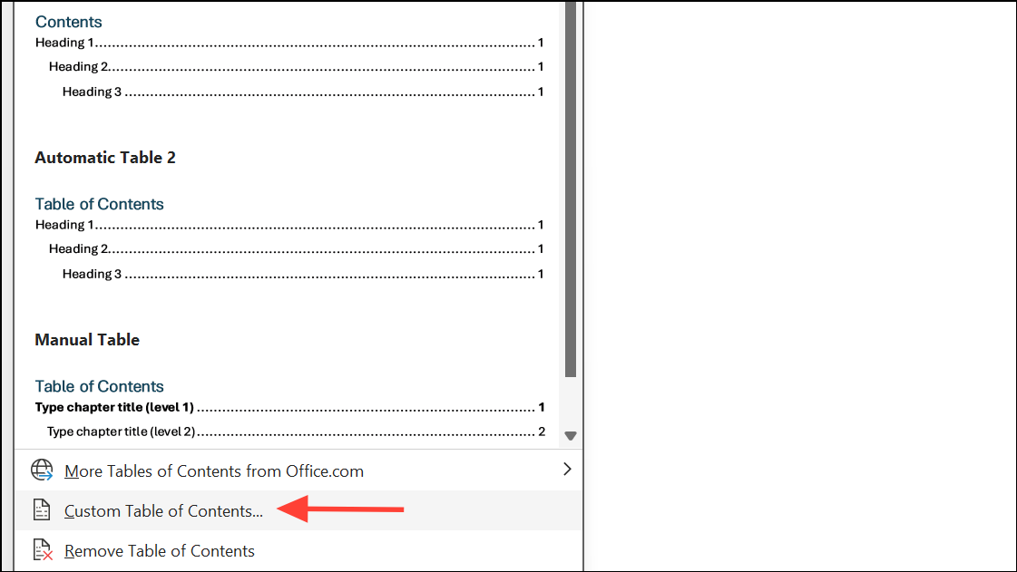 Step 3: If you update your document and need to refresh the TOC, right-click the TOC and select Update Field. You can choose to update just the page numbers or the entire table.