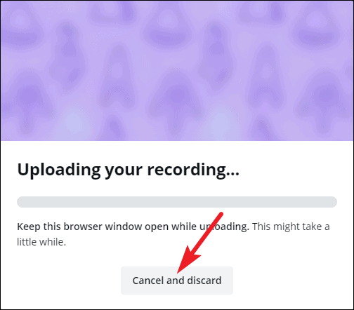 It’ll take a few seconds for your recording to process and upload. You can discard the recording at this stage if you weren’t happy with it and begin again.