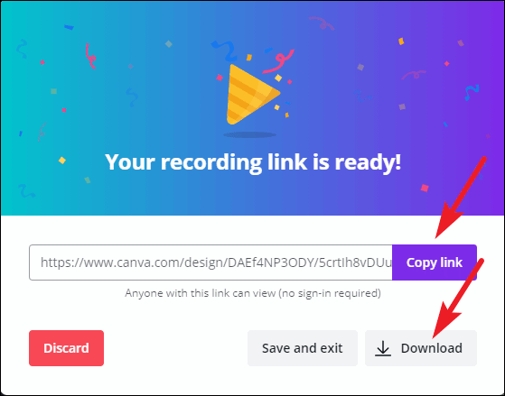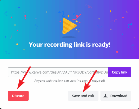 You can also just ‘Save and exit’ instead of choosing from either of the above options. Or click ‘Discard’ if you want to record again.