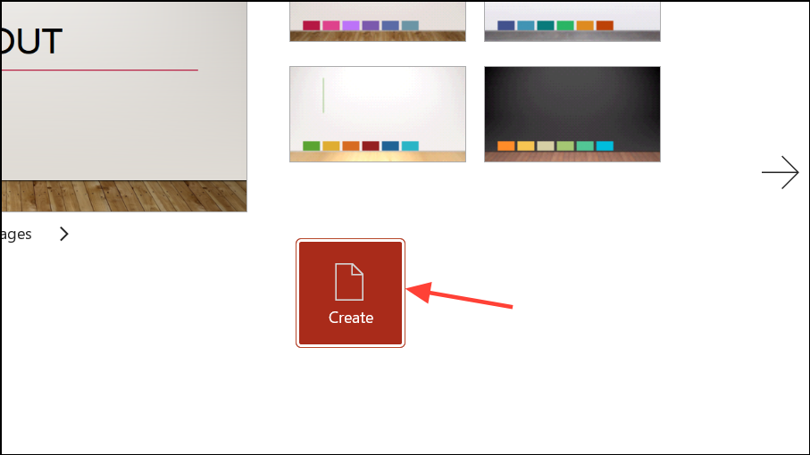 Step 2: In the search bar, type timeline to view available timeline templates. Browse the results and click Create on your preferred template to open it as a new presentation.