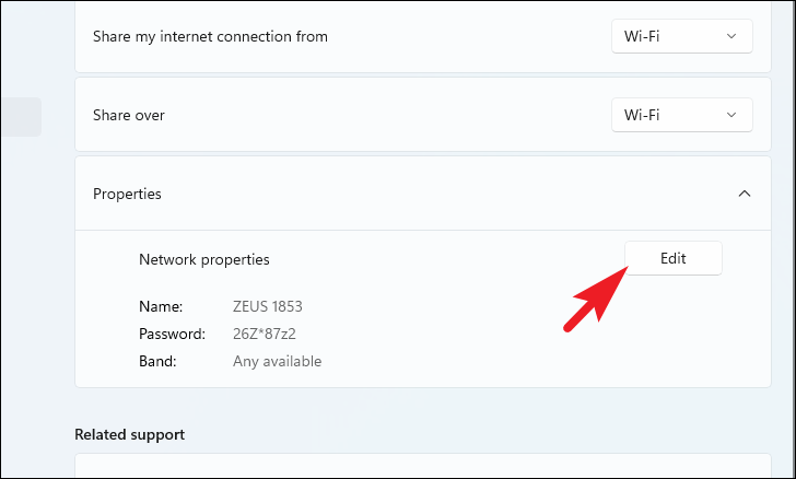 Step 6: Click on the Edit button to modify your hotspot's network name and password.
