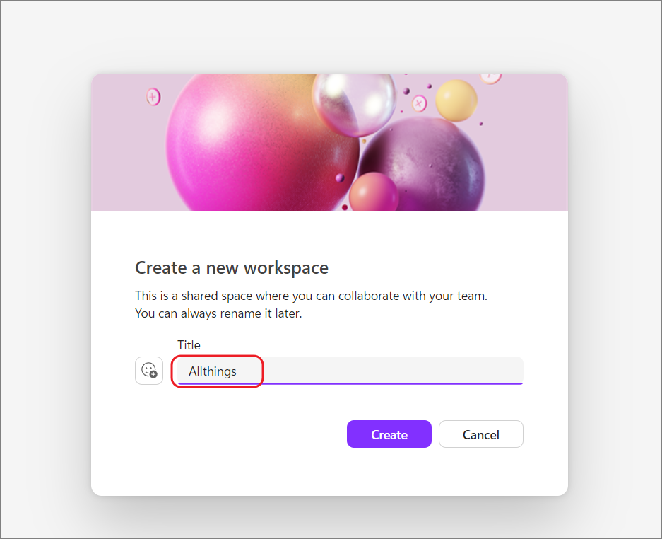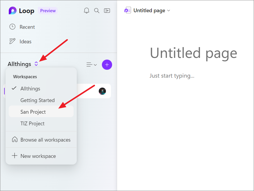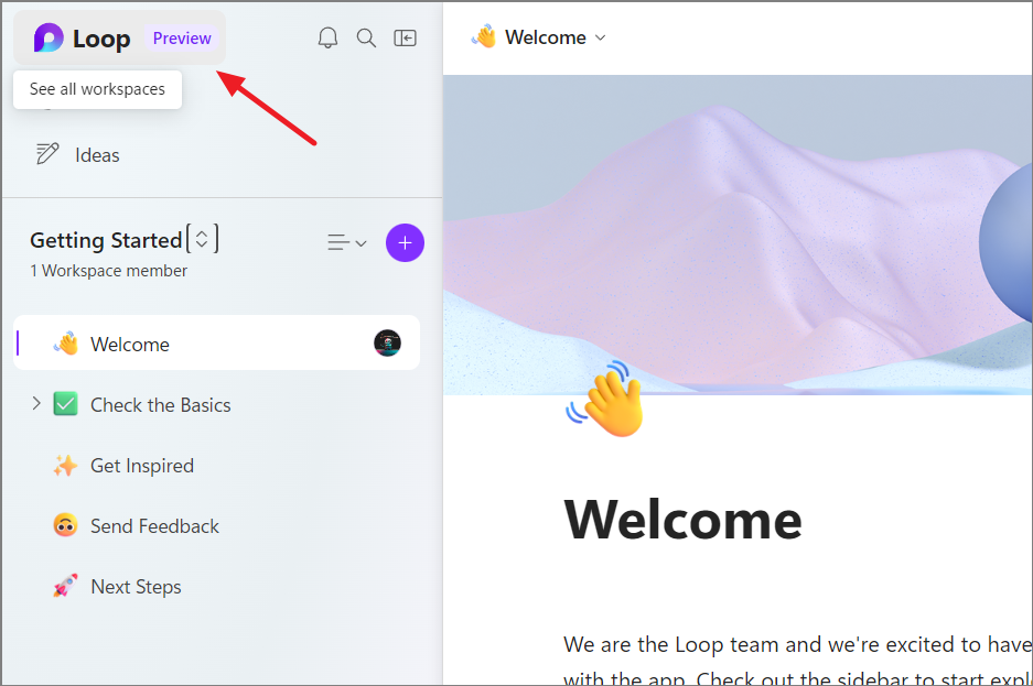 You can create multiple workspaces for sharing and collaborating with others, each dedicated to different projects. Follow these steps to create a workspace in Loop:
