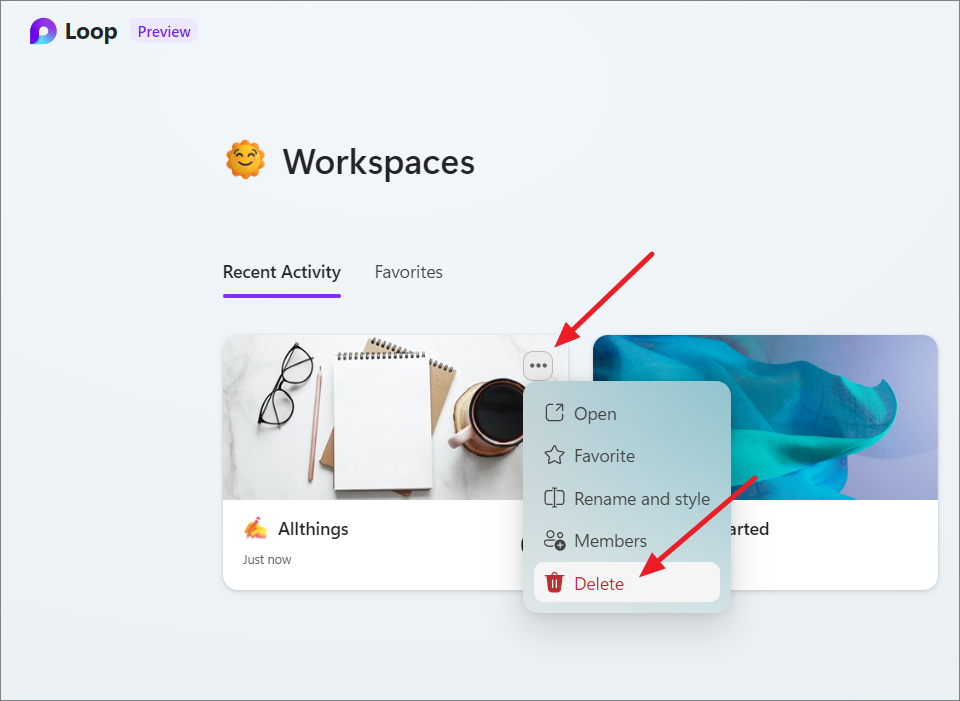 Deleting a Workspace in Microsoft Loop