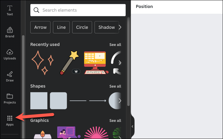- Go to 'Apps' from the left toolbar of the editor.
