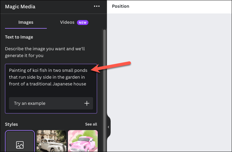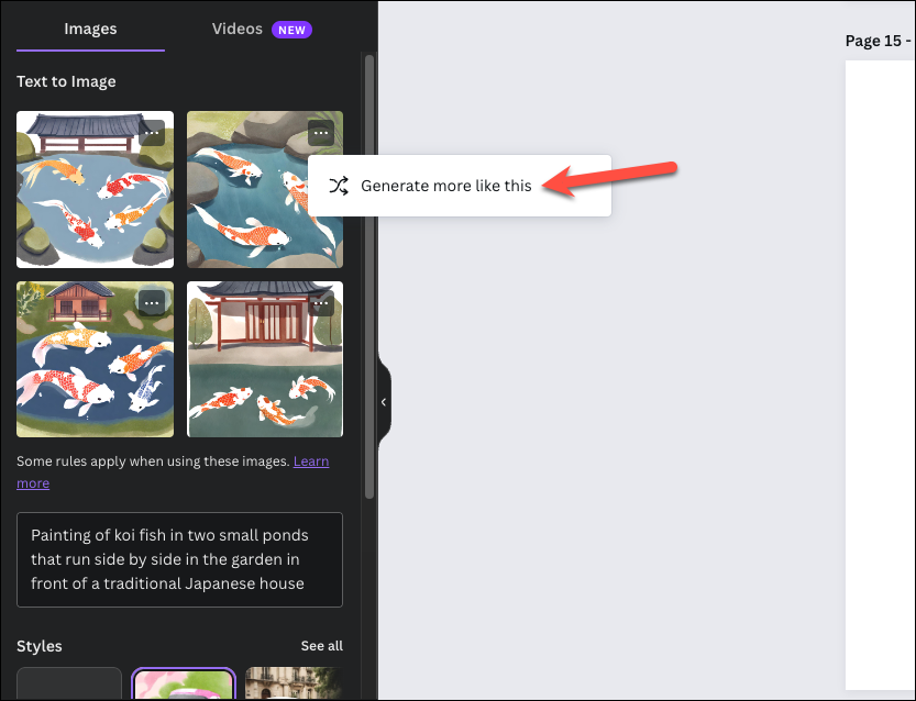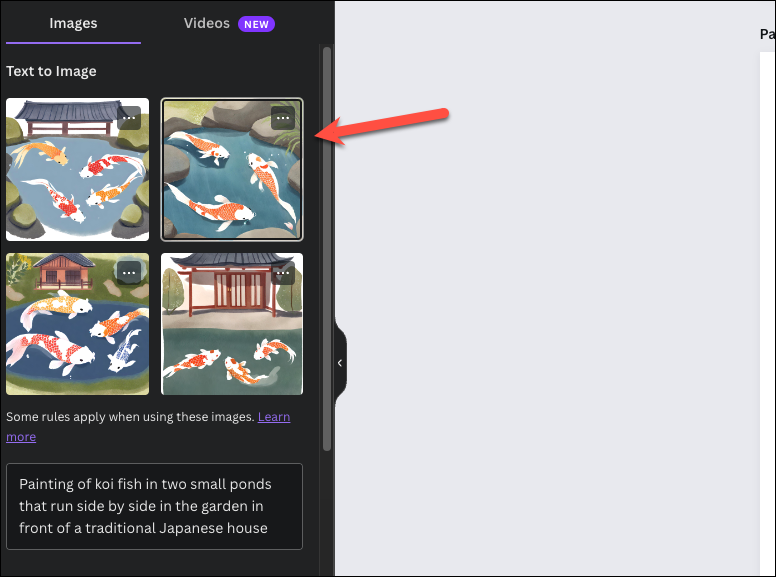 For example, I gave the following prompt to Magic Media, which was a bit too specific, and the AI did not follow the instructions down to the tee:Painting of koi fish in two small ponds that run side by side in the garden in front of a traditional Japanese house
