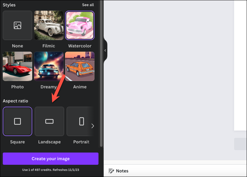 - Next, select an aspect ratio from 'Square', 'Portrait', and 'Landscape'; by default, 'Square' is selected.