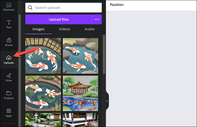 - You can find the images you do add to your design in the 'Uploads' tab but not the other generated images you don't end up using.