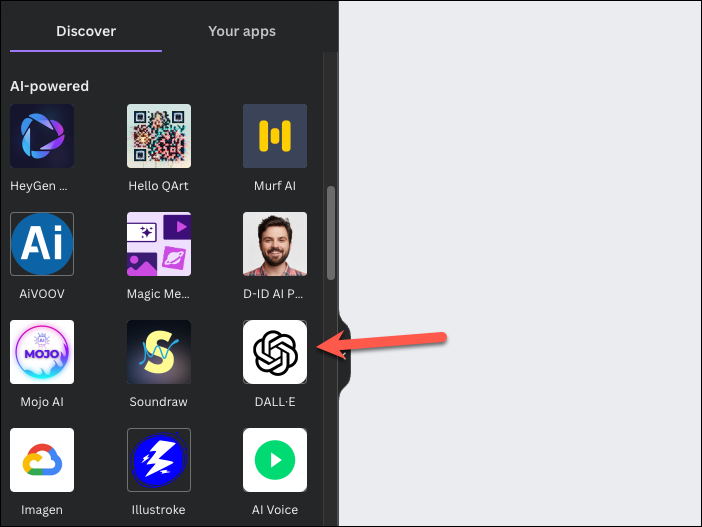 - Then, click the option for 'DALL-E'; you can also use the search bar to find it.