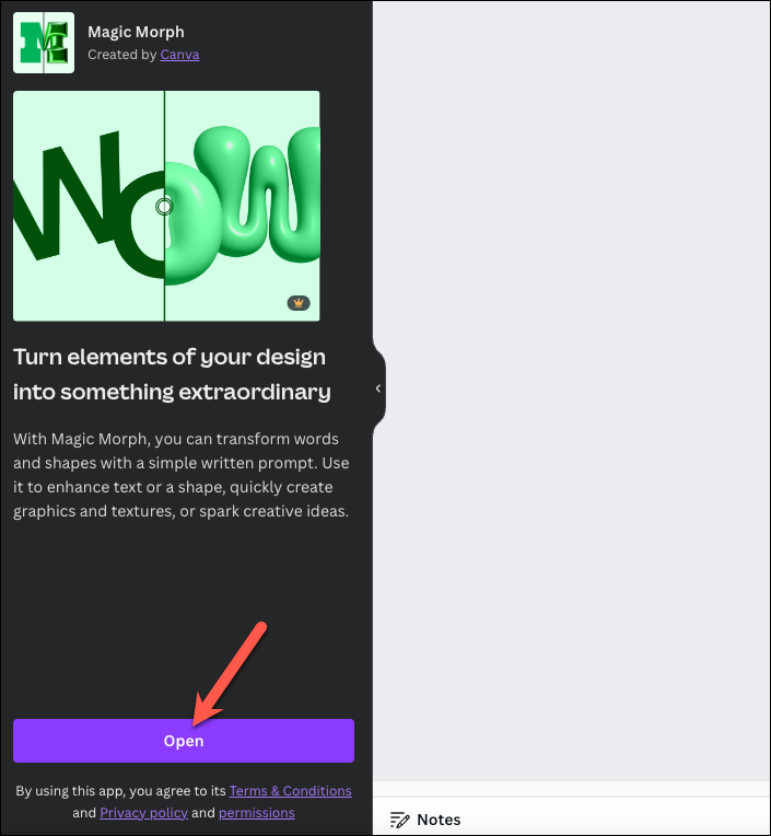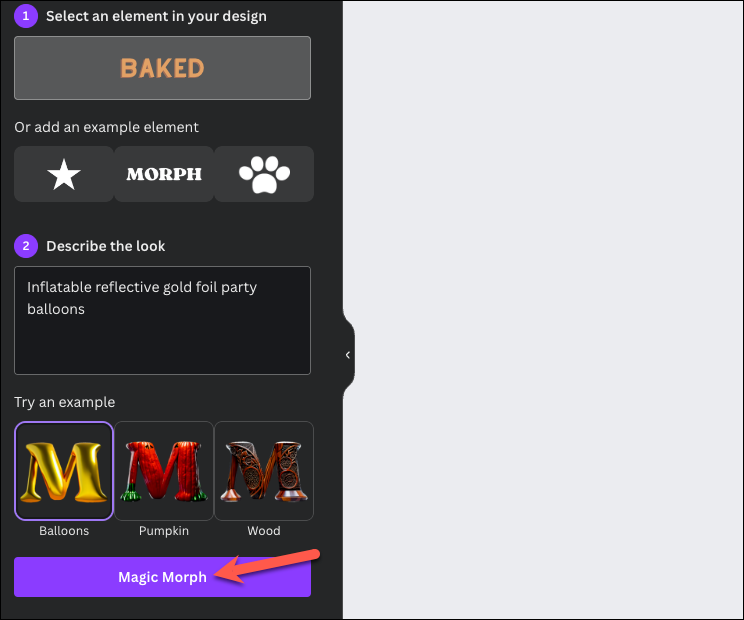 Canva's Magic Studio comes with another great tool using which you can create some rather cool graphics for your designs: Magic Morph. It can transform ordinary text, element, or shape from your design into unique graphics.