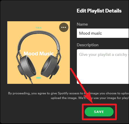 Step 3: After selecting your image, click the Save button to apply the changes. Your playlist will now display your custom cover art.