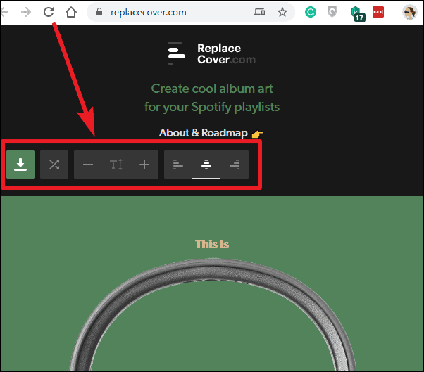 To personalize the text on your album art, simply hover over the existing text and click to edit it. You can modify the content to reflect your playlist's theme. Additionally, you have the option to resize and realign the text using the editing tools provided. If you're feeling adventurous, click on the Shuffle button to generate a random combination of images, themes, and text, which you can further customize as you like.