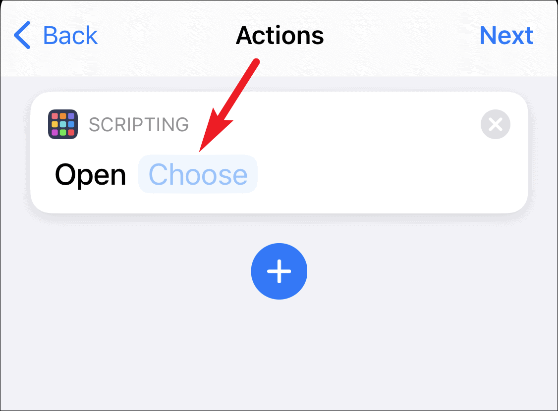 The Scripting action for Opening an app would be added. Tap on ‘Choose’ to select the journaling app you’d like it to open.