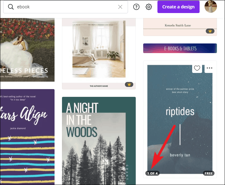 Now, this will bring up the templates for eBooks of all categories. Some of these templates will also have multiple pages, and one of these is what we’ll be looking for. Although you can create your eBook from scratch, starting with a template will make things easier and faster.