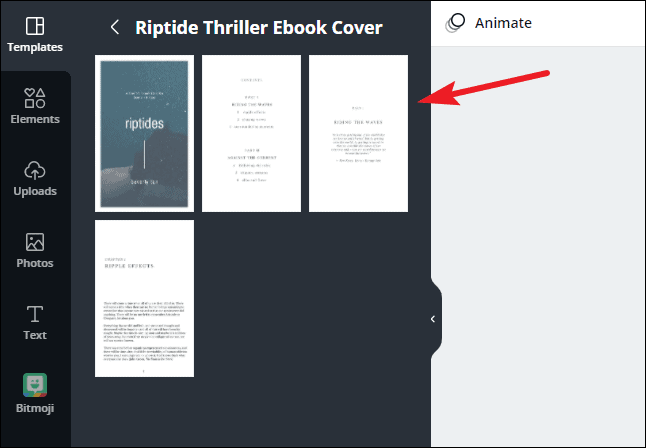 Hover over a template you like. If it has multiple pages, it’ll indicate so in the bottom-left corner of the thumbnail. If the template has, say, 4 pages, it’ll say ‘1 of 4 pages’, and they’ll start previewing in the thumbnail itself.