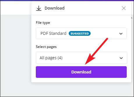 Select ‘PDF’ from the file types. Under Pages, keep all pages selected unless you don’t want certain pages. Then, click the ‘Download’ button.