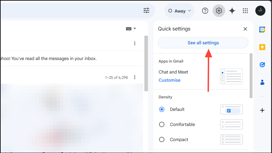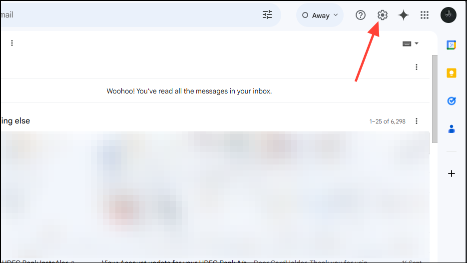 - Open Gmail and click on the gear icon at the top to access Gmail settings.