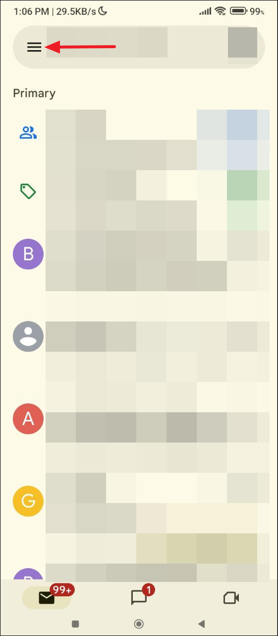- Open Gmail on your mobile device and tap on the hamburger menu that appears as a set of three horizontal lines on the top left.
