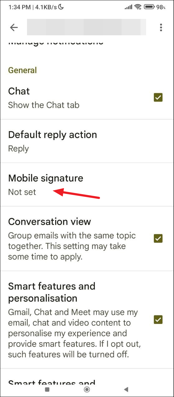 - Scroll down and then tap on 'Mobile signature'.