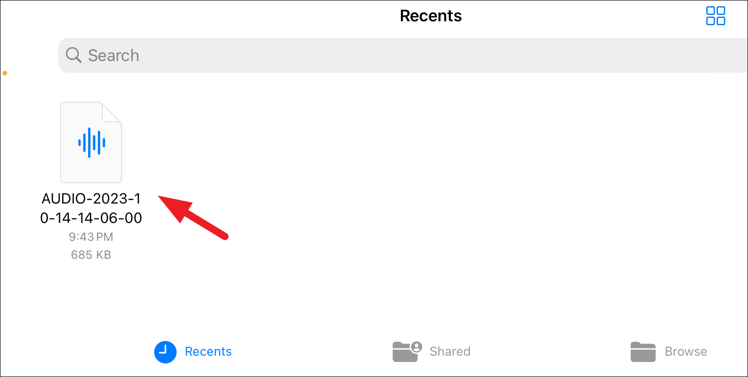- On the next screen, long press the newly created audio file.
