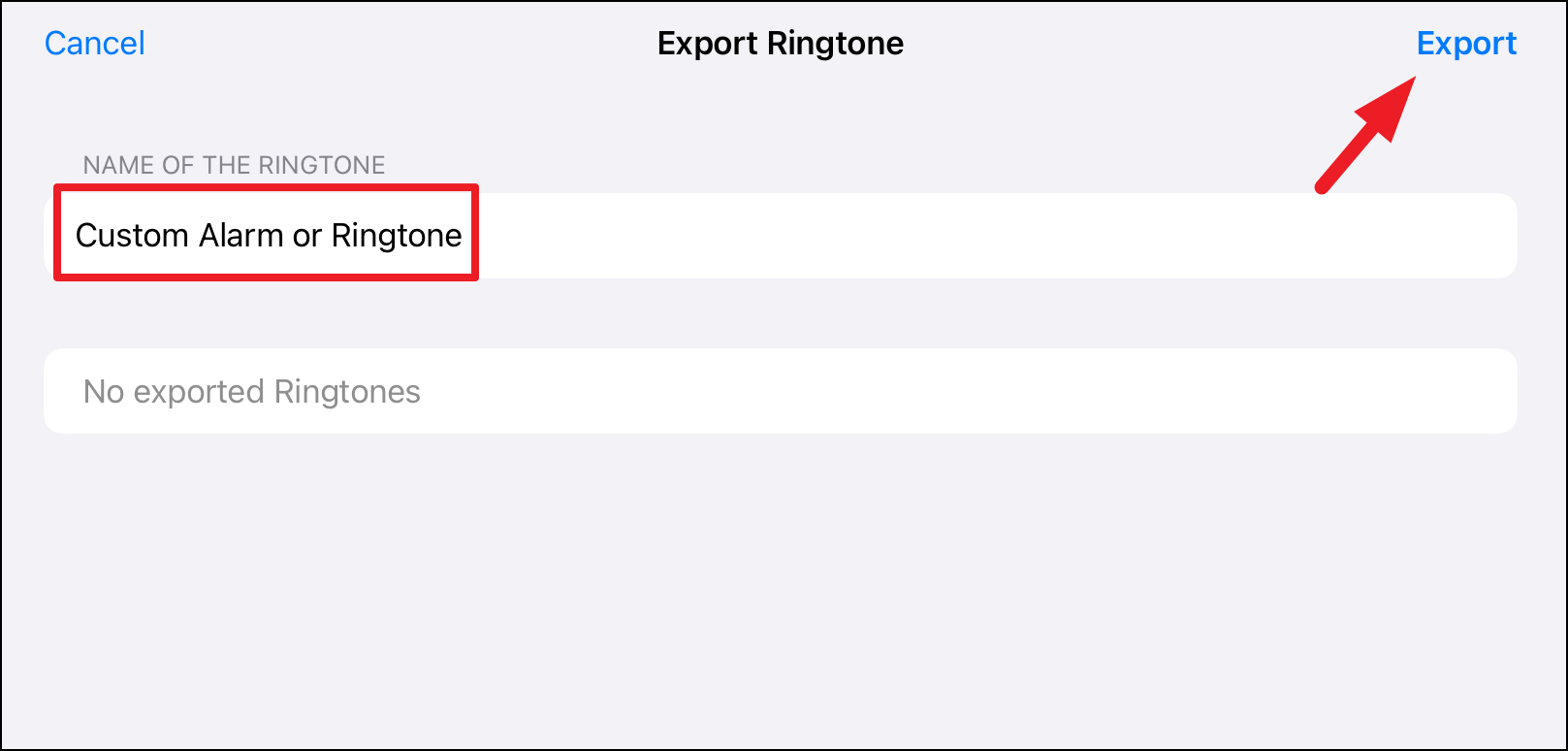 - Now, provide an appropriate name for the ringtone that is easily identifiable. Finally, tap on 'Export'.
