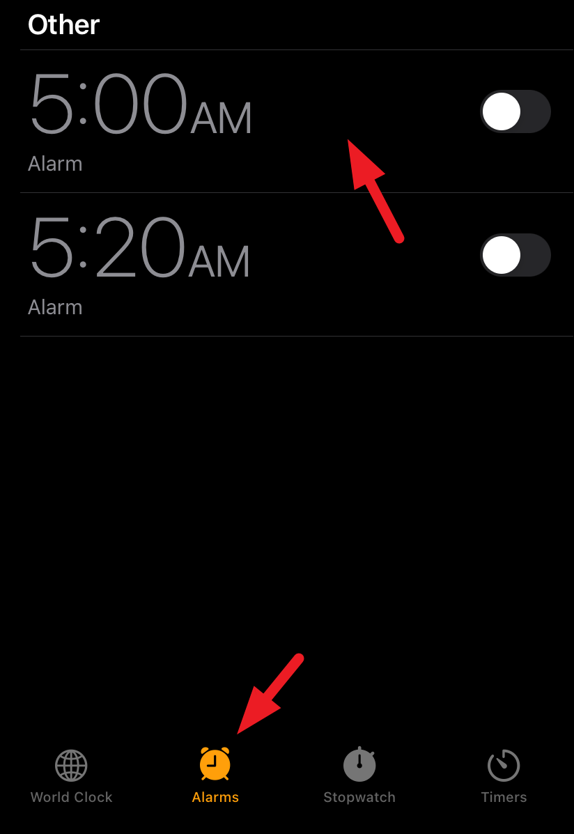 - Launch the 'Clock' app and head to the 'Alarms' tab. Tap on the alarm for which you wish to set the custom tone.