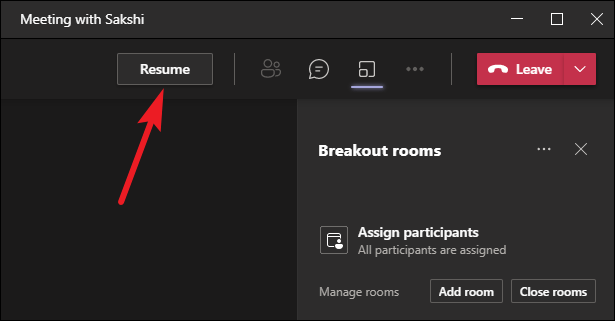 Every time you return to the main meeting from a breakout room, the meeting is on hold. It’s true for both the organizer and the participants. Click the ‘Resume’ button to continue the meeting from your end. You can jump between all the breakout rooms similarly.