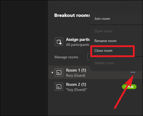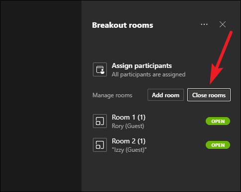 Click ‘Close Rooms’ to simultaneously close all the breakout rooms.