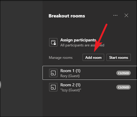 To add a room, go to the breakout room panel and click the ‘Add Room’ option. A new room will be created instantly.