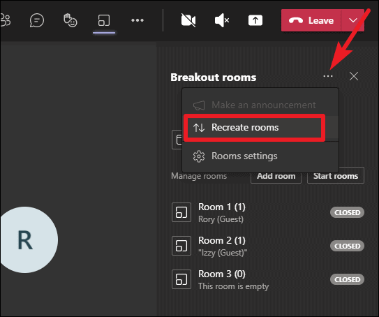 Recreate the Rooms: At any point if you want to scrap the existing breakout rooms entirely and start from scratch, that too is possible. Go to ‘More Options’ at the top of the breakout rooms panel, and then select ‘Recreate Rooms’ from the menu. The existing rooms will be deleted, and the window to create rooms will appear again.