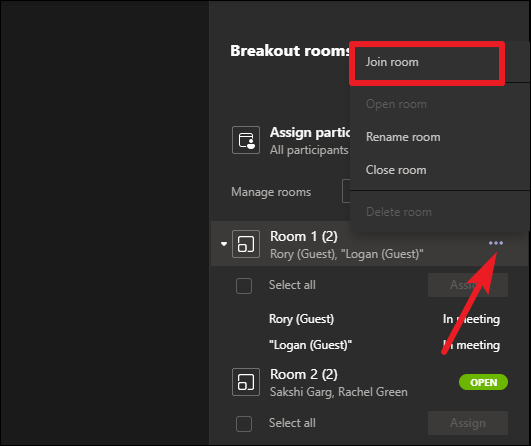 The meeting host is not part of any breakout room, but they can join any room at any time they want. To join a room and interact with the participants, click the ‘More Options’ icon next to that room and select ‘Join Room’ from the menu.