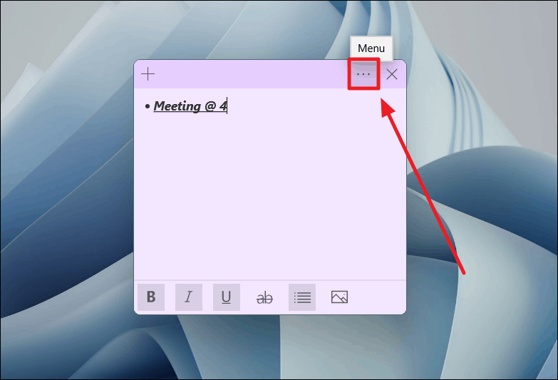 Step 1: To personalize your note's appearance, click on the three-dot menu button located at the top-right corner of the sticky note.