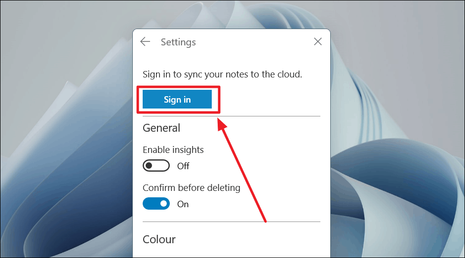 Enable Syncing: Click on the settings gear icon in the main Sticky Notes window. Sign in with your Microsoft account if you haven't already. Once signed in, your notes will automatically sync across any Windows devices where you're logged in with the same account.