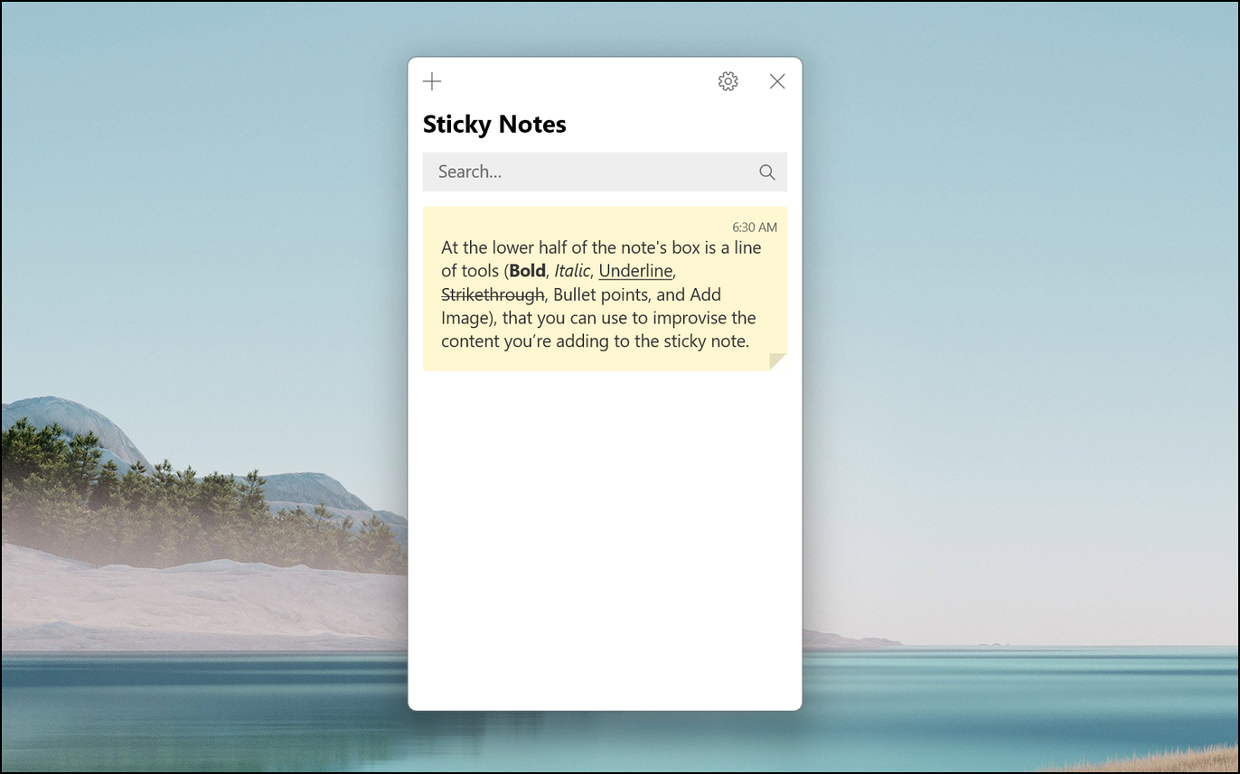 Step 3: The note will remain on your desktop until you choose to close it. If you restart your computer, the note will disappear from the desktop but will reappear when you open the Sticky Notes app again.