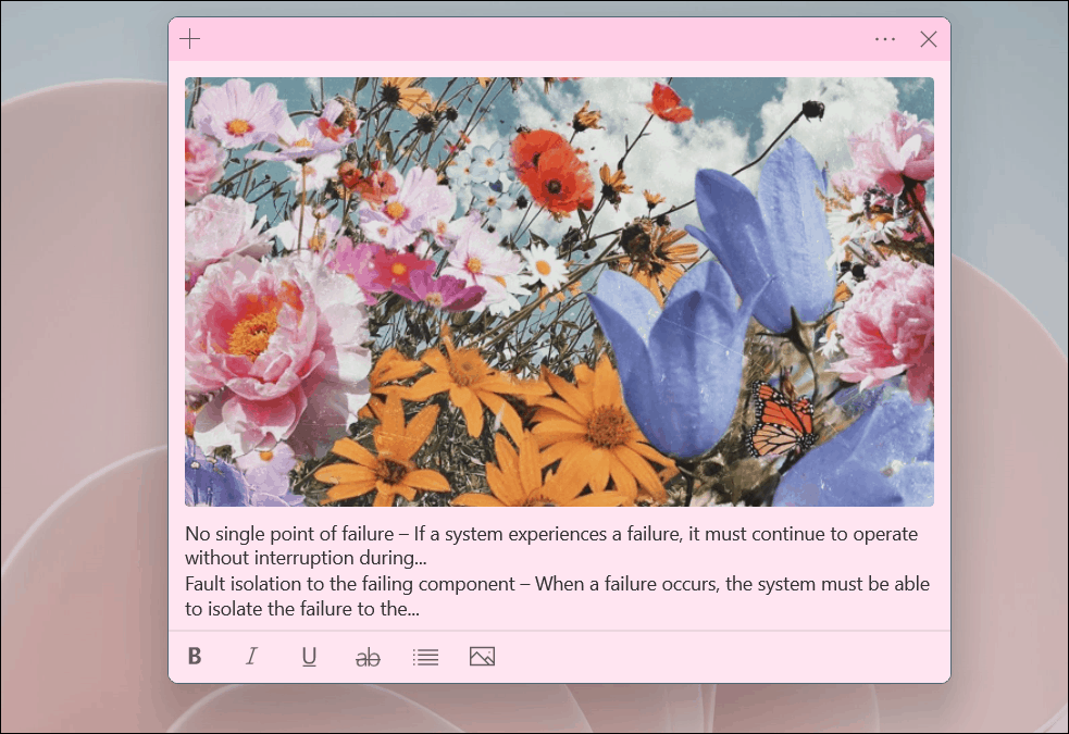 Step 3: The image will appear within your sticky note. You can adjust its size by resizing the note window itself. Drag the edges of the note to expand or shrink the image and text layout.