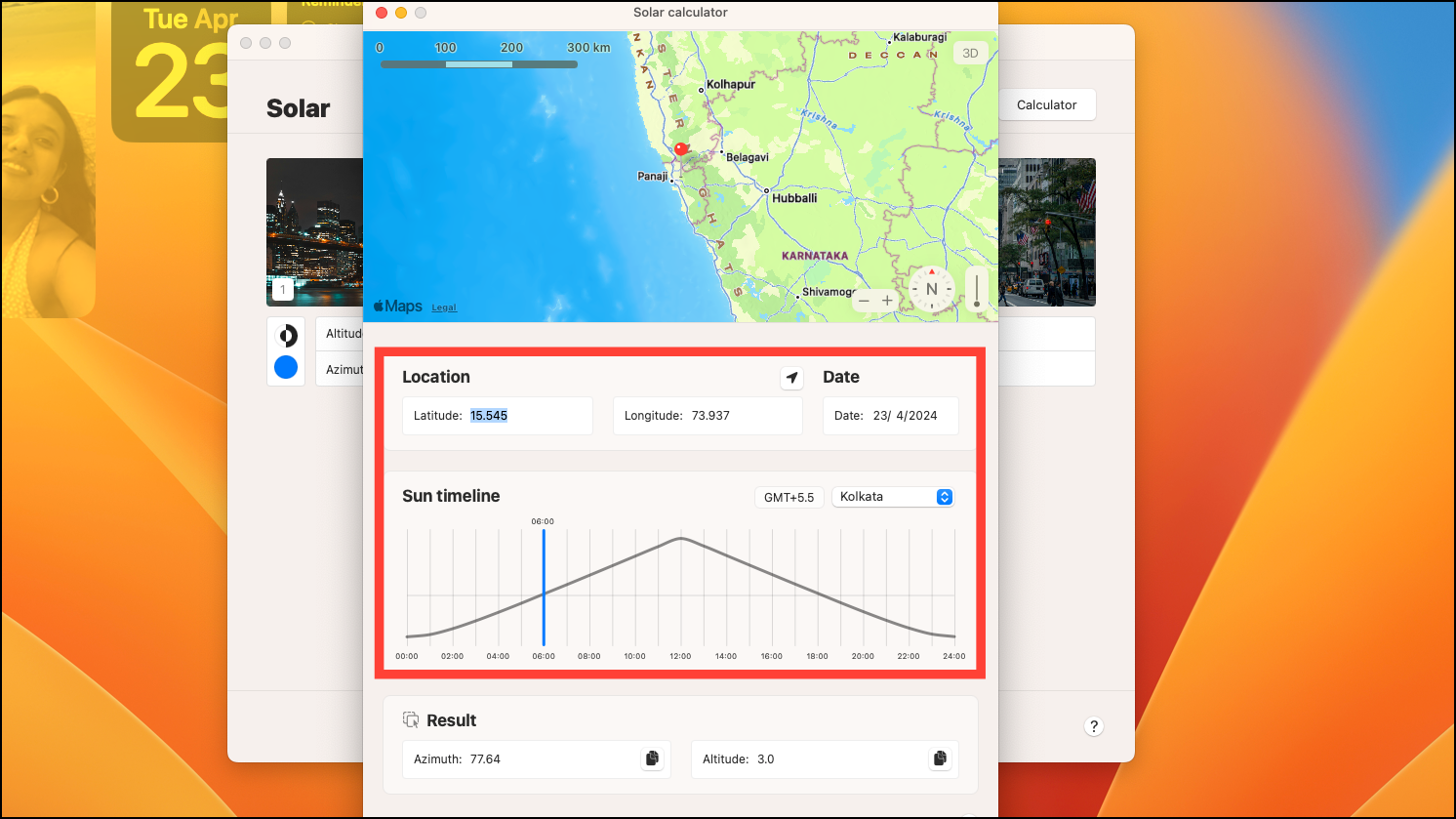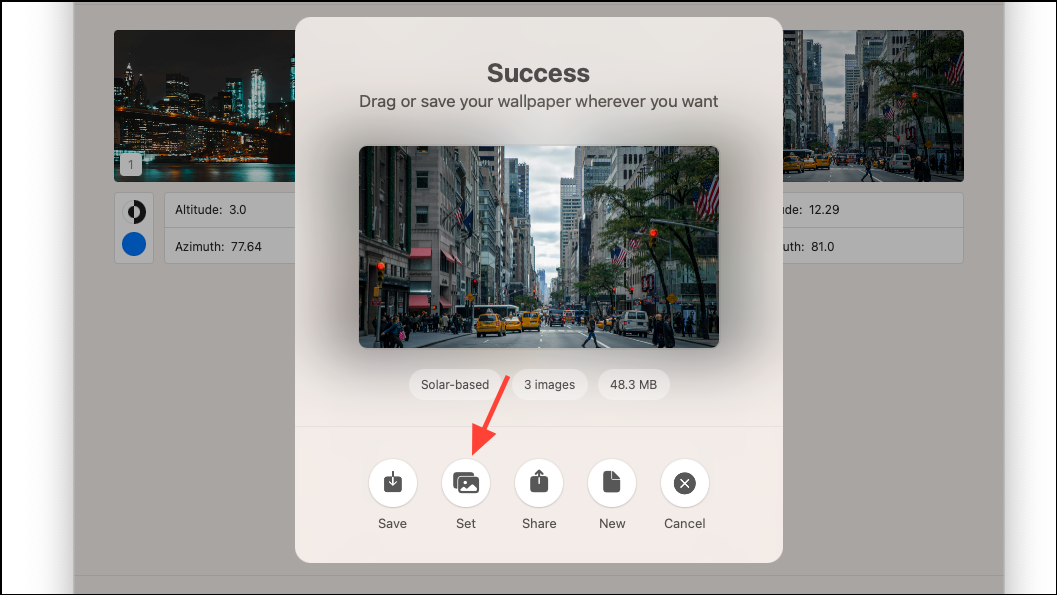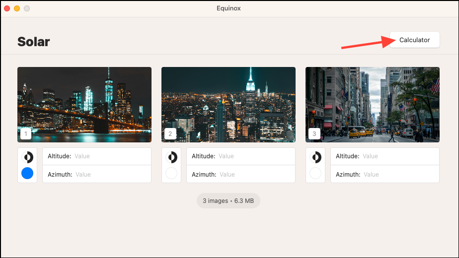 Step 5: You need to provide the Altitude and Azimuth values for each photo. These values determine when each image will display based on the sun's position. You can calculate them using the Sun Calculator within the app. Ideally, provide the Altitude and Azimuth corresponding to the time and location when each photo was taken, or you can use your current location to configure the wallpapers according to the sun's position where you are.