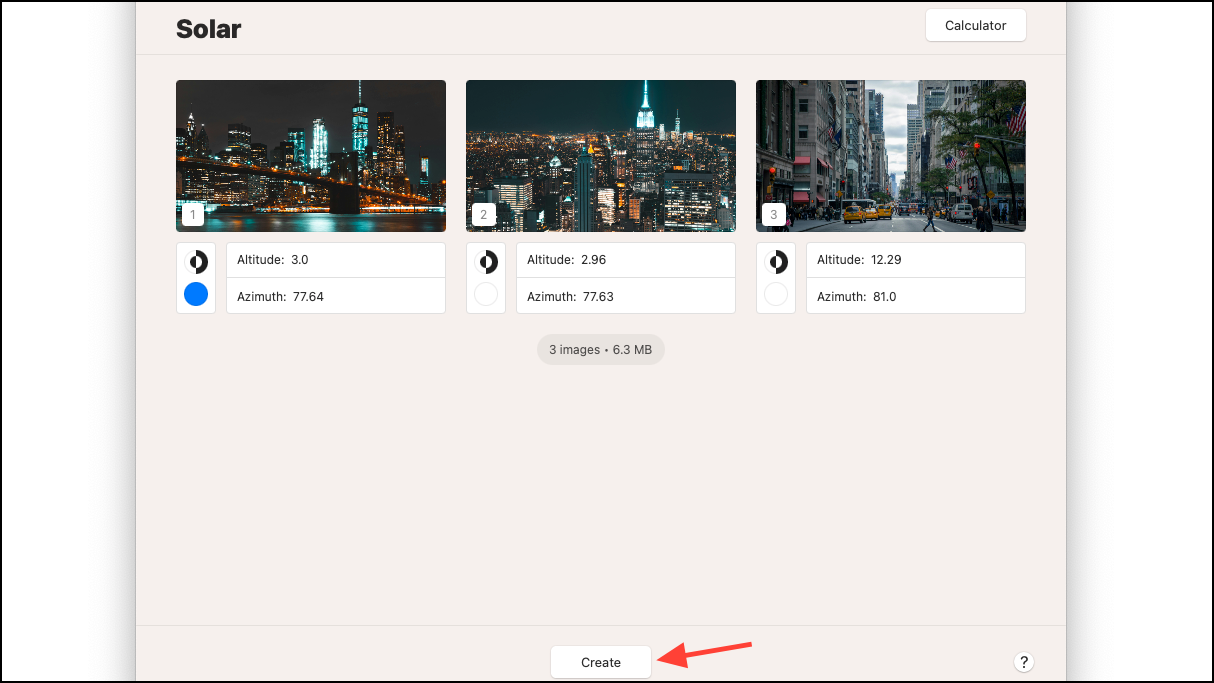 Step 8: After assigning Altitude and Azimuth values to all your images, click on the 'Create' button.