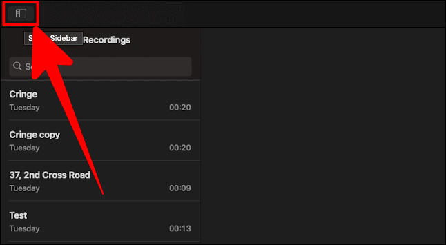 Above the ‘All Recordings’ section on the ‘Voice Memos’ screen would be a ‘Show Sidebar’ icon. Click on it.