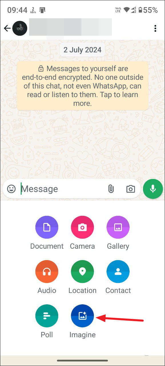 - Then tap on the 'Imagine' option at the bottom.