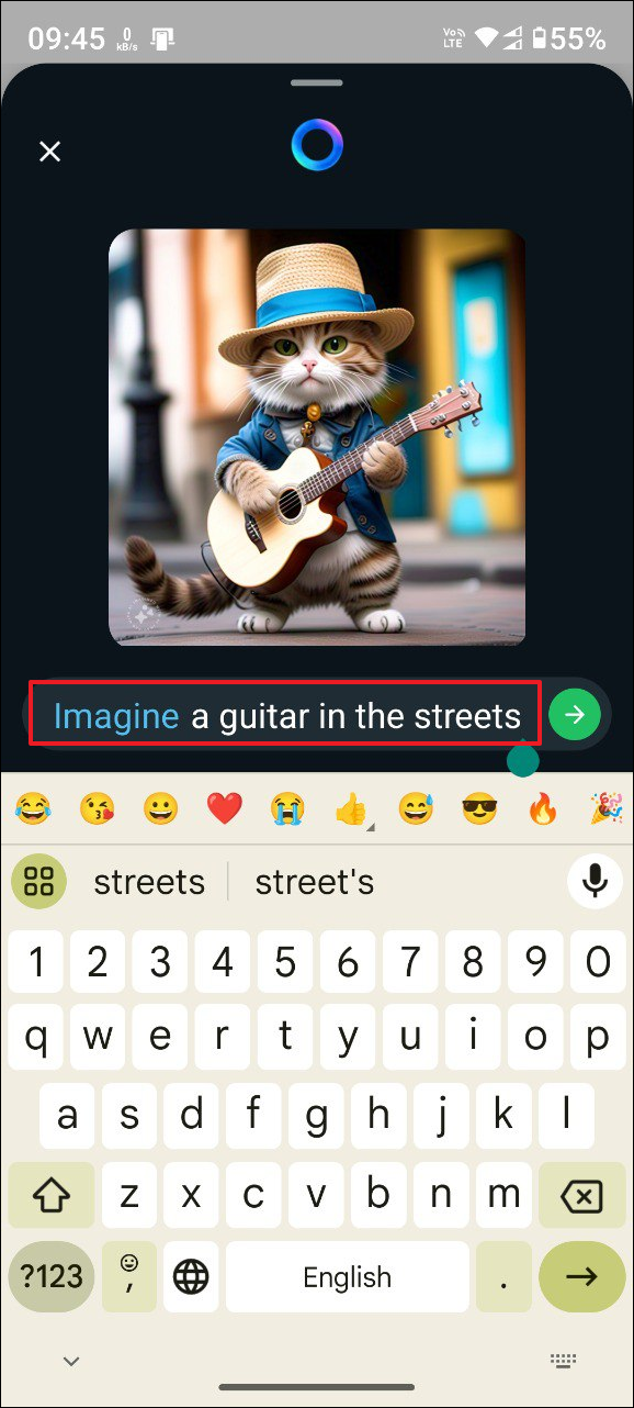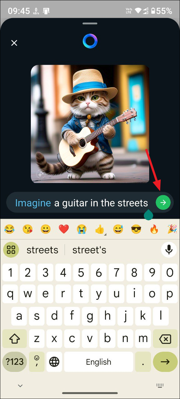 - Meta AI will start generating an image as soon as you start typing. Once you are happy with the generated image, tap on the arrow button on the right of the text box.