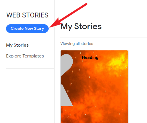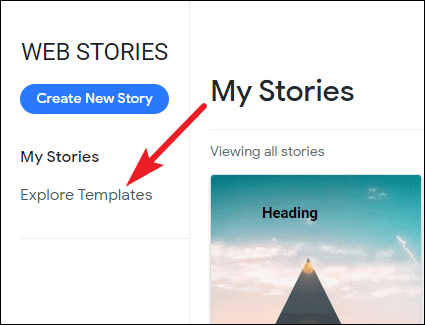 From the Web Stories dashboard, click on ‘Explore Templates’ option to open the templates.