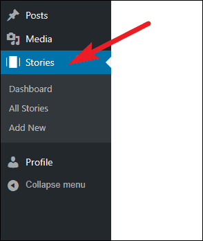 After it has installed, activate it, and a new option for ‘Stories’ will appear on the WordPress menu.