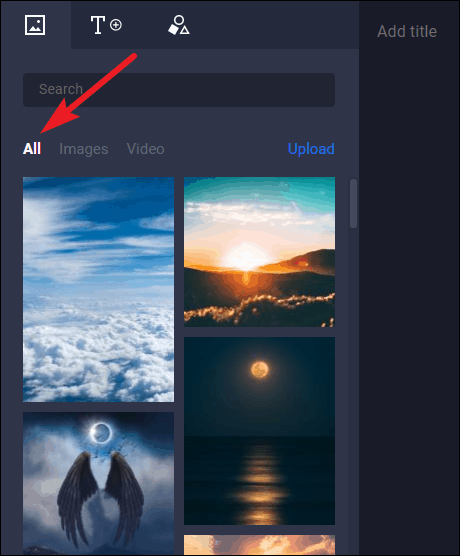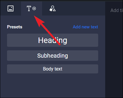 To switch from images to text, or shapes, click on the tabs towards the top of the element section.