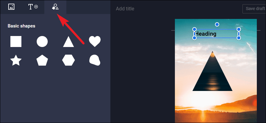 Shapes include some pretty standard, run of the mill shapes like a circle, square, triangle, heart, some polygons, and a blob. The shapes might be pretty basic but these can be used as masks to drop images while creating a story. These too can be added by either clicking on them or dragging-and-dropping to the particular area where you want them.